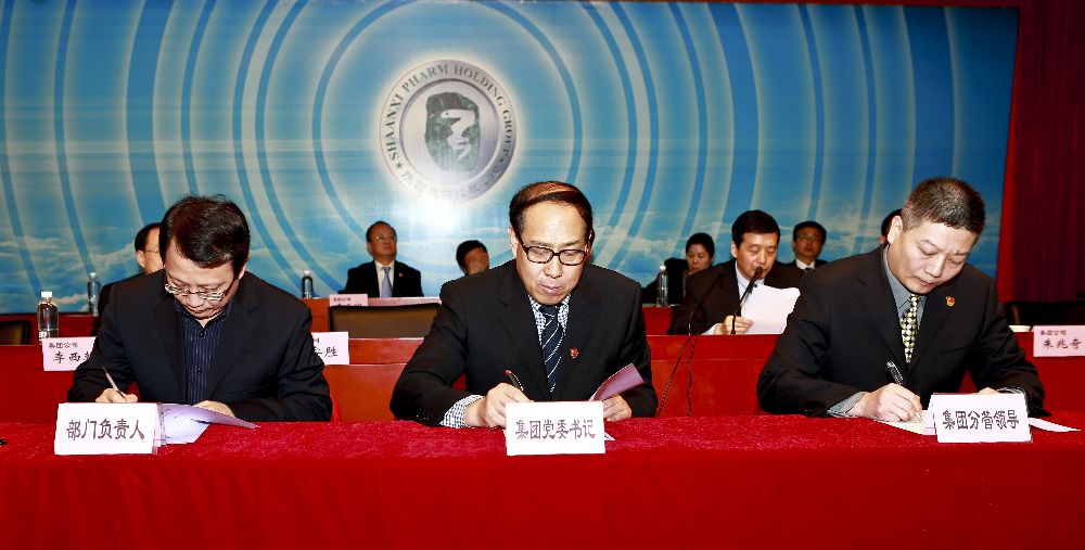 会上,党委副书记、总经理翟日强代表集团公司与权属企业签订2014年经营目标责任书;董事长、党委书记昝安胜与机关各部门,党委副书记、纪委书记朱兆奇代表集团公司与系统各单位签订2014年廉政建设责任书;党委常委、董事、副总经理李西乾代表集团公司与各单位签订2014年安全生产责任书。