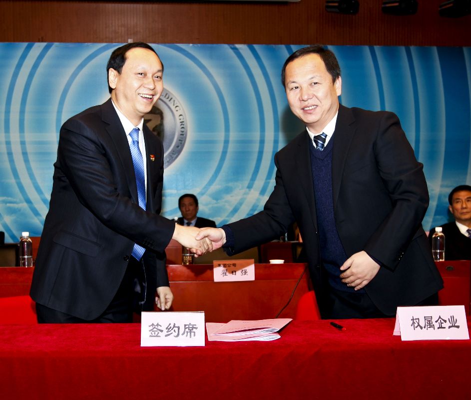 党委副书记、总经理翟日强代表集团公司与权属企业签订2014年经营目标责任书