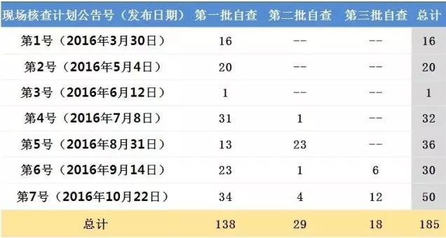 10月22日,药物临床试验数据现场核查计划第7号发布。不到7个月的时间,从2016年3月30日的第1号,到2016年10月22日的第7号,7批核查计划共涉及185个受理号。